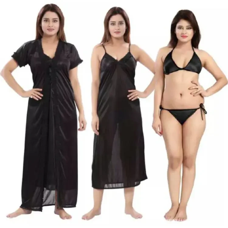 Elevate your nighttime elegance with our 4 Part Comfortable Night Dress, featuring a sleek new design for 2023 in captivating black color.