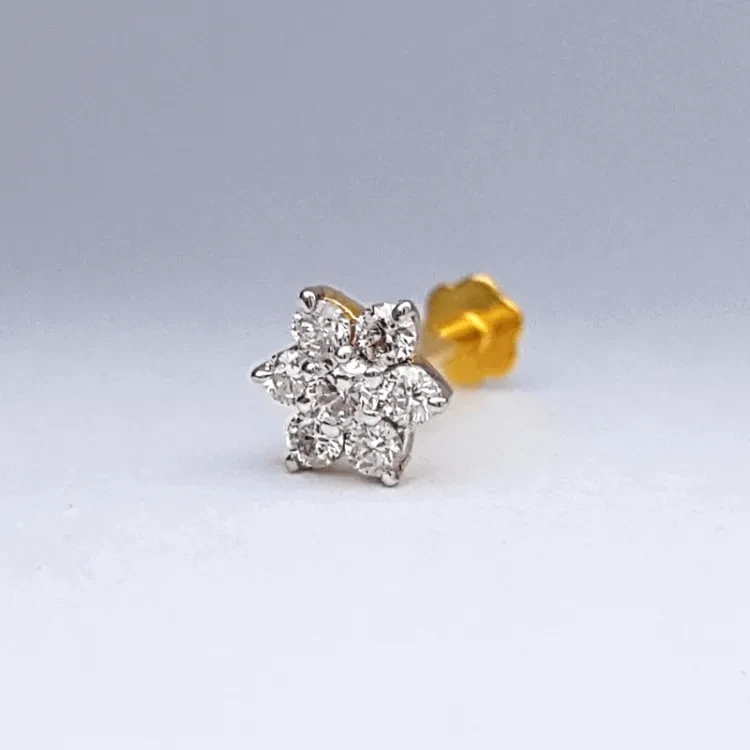 Enhance your look with this elegant and stylish 7 AD Stone Gold Plated Nose Pin. Crafted with high-quality materials including alloy, brass, bronze, copper, and gold plating, this nose pin offers durability and a luxurious appearance. The nose pin features AD diamond-cut zircon rhinestones in a stunning white color, adding a touch of sparkle to your ensemble. With a size of approximately 2.5mm and a flexible design, it is suitable for everyone. This fashionable nose pin is designed to last, with its color retaining its brilliance for 5-7 years under normal use.