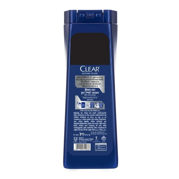 • Specially made for men, CLEAR Men Cool Sport Menthol Shampoo is infused with Menthol to thoroughly remove all traces of grime, grease and dandruff on your hair and scalp, while providing a cooling sensation that keeps your hair and scalp feeling fresh. Achieve those power lifts without worrying about your scalp. CLEAR Men shampoos are formulated with Taurine and Triple Anti-Dandruff Technology to activate scalp to remove, resist and prevent dandruff. End recurring dandruff, for 100% confidence.