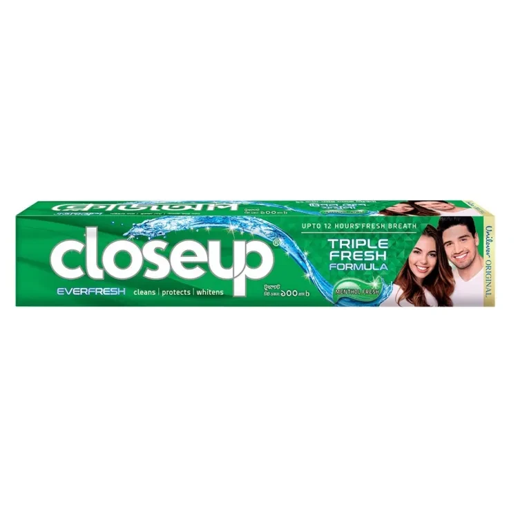 Closeup Toothpaste Menthol Fresh is formulated to provide you with fresh breath and a sparkling white smile. Its unique active zinc mouthwash not only cleans deep corners of your mouth of residual germs but also gives you up to 12 hours of fresh breath. Let Closeup give you the confidence to make your first move on the person you desire.