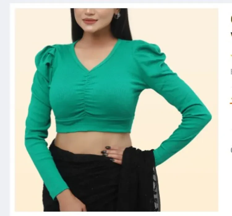 Elevate your wardrobe with this stylish Crop Top Full Sleeve Fashionable Blouse, a must-have for every woman's wardrobe. Crafted from comfortable cotton material, this blouse offers both style and comfort, making it ideal for various occasions.
