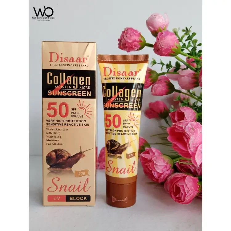 Embrace the sun with confidence while keeping your skin protected and radiant with Disaar Snail Collagen Sunscreen Cream.