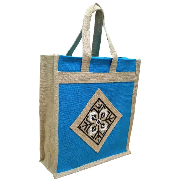 These elegant jute shopping bags are suitable for various occasions, including shopping, traveling, and carrying documents. The hand-embroidered design adds an exclusive touch to each bag.