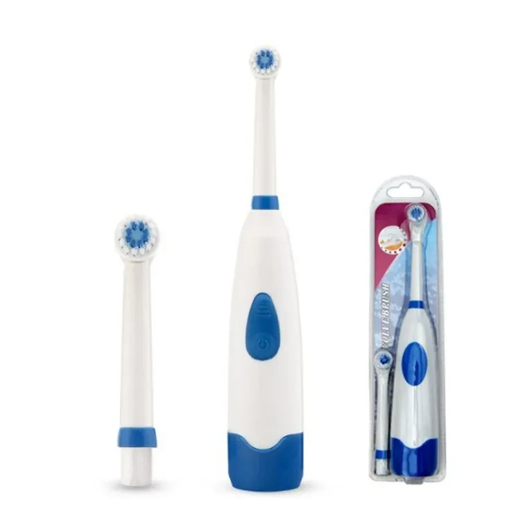 - Battery operated toothbrush with 2 replaceable extra brush heads.