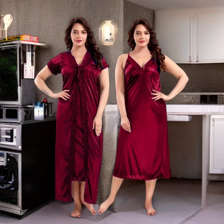 Indulge in luxury and relaxation with our High-Quality Silk Cotton Two-Piece Night Dress for Women, the perfect choice for your nighttime comfort.