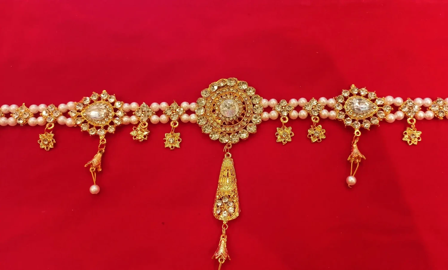 Enhance your style with this fashionable Gold Plated Stone Bicha for Women. This elegant accessory is designed to add a touch of sophistication to your ensemble, whether you're wearing a saree or a salwar kameez. Crafted with diamond-cut stones on a metal base, this bicha offers durability and timeless appeal. The gold plating adds a luxurious finish, ensuring a glamorous look. With its versatile design, it can be worn on various occasions, making it a perfect choice for both everyday wear and special events. To maintain its shine and longevity, keep your jewelry safe from soap, hand wash, shampoo, perfume, or deodorant. It's recommended to wear your makeup and perfume before putting on your jewelry to preserve its shine for years to come. Store this bicha in an air-tight container when not in use to prevent tarnishing.