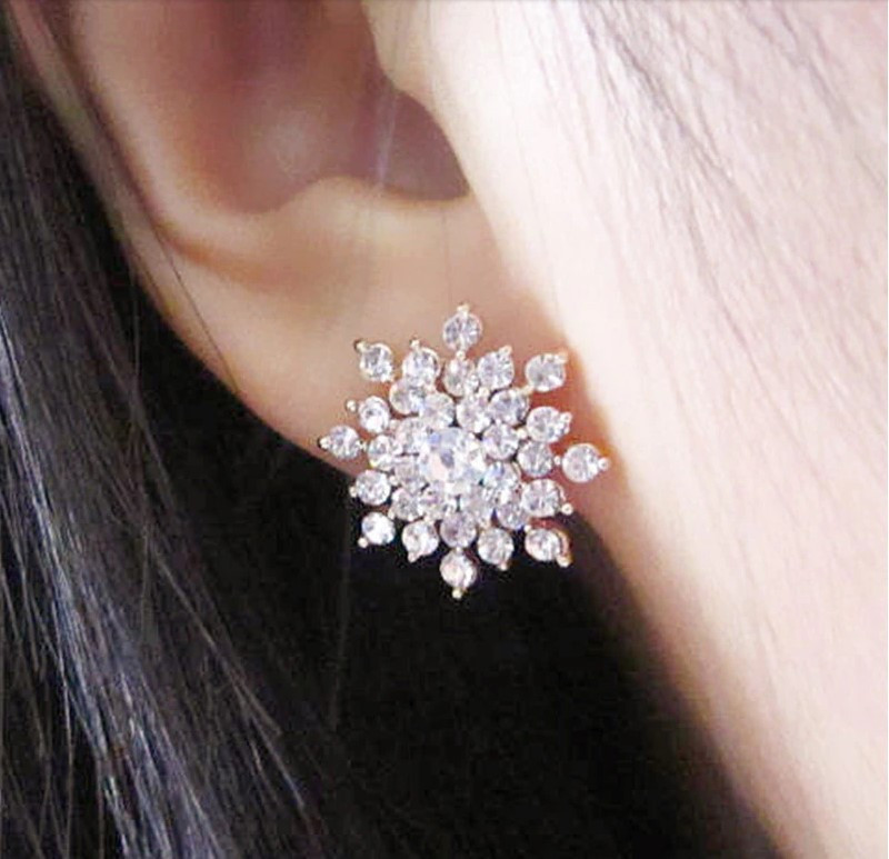 Enhance your look with these stylish and trendy Korean Fashion Jewelry Crystal Christmas Snowflake Flower Earrings, perfect for adding a touch of sparkle to any ensemble