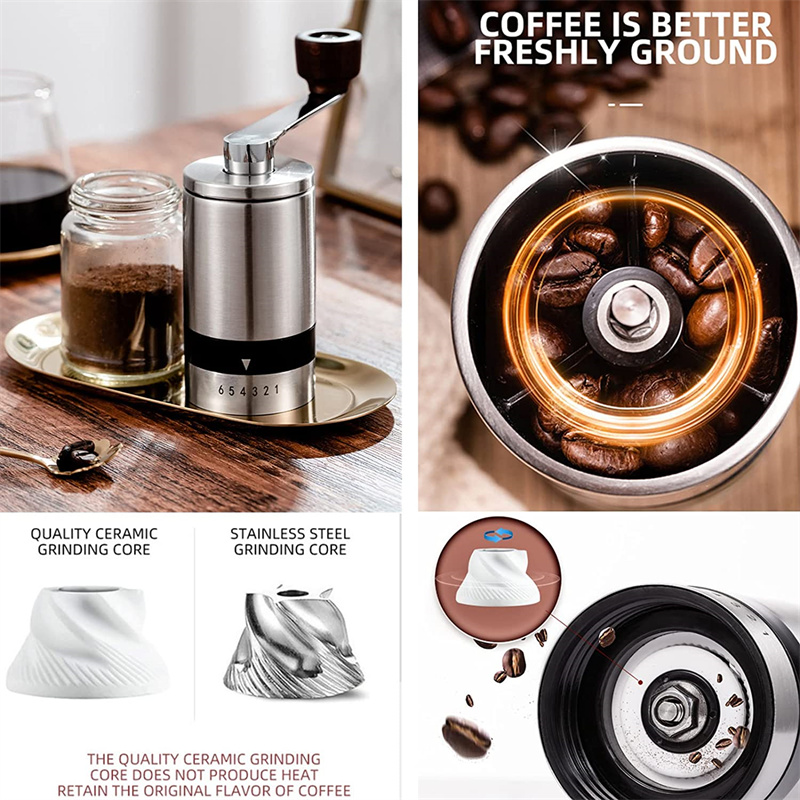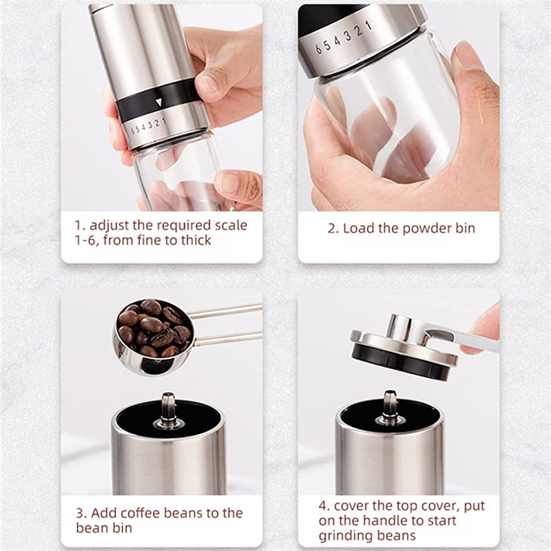Specifications of Portable coffee grinder coffee grinder with ceramic burrs 6/8 Adjustable settings Portable crank tool