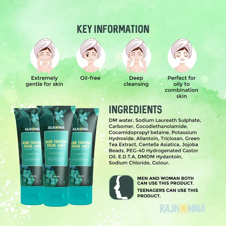 Product details of Rajkonna Acne Fighting Facial Wash With Jojoba Beads (100ml)