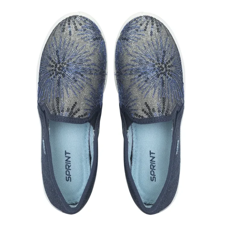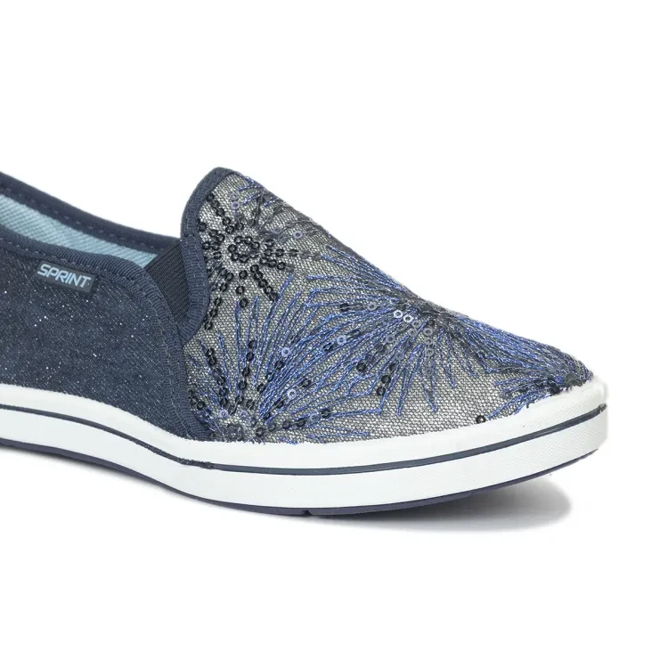 The Sprint Navy Fabric Canvas for Women is a stylish and comfortable footwear option designed for women. Crafted from high-quality fabric material, these canvas shoes feature a beautiful floral print in blue and grey color contrast. The upper material is not only visually appealing but also ensures comfort and durability, making these shoes suitable for long-lasting wear