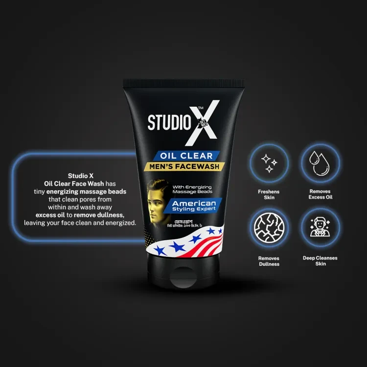 • Studio X Oil Clear Facewash is available in two sizes: 50ml & 100ml. It is a suitable face wash for oily skin. Studio X Oil Clear Facewash is the product of Marico Bangladesh.