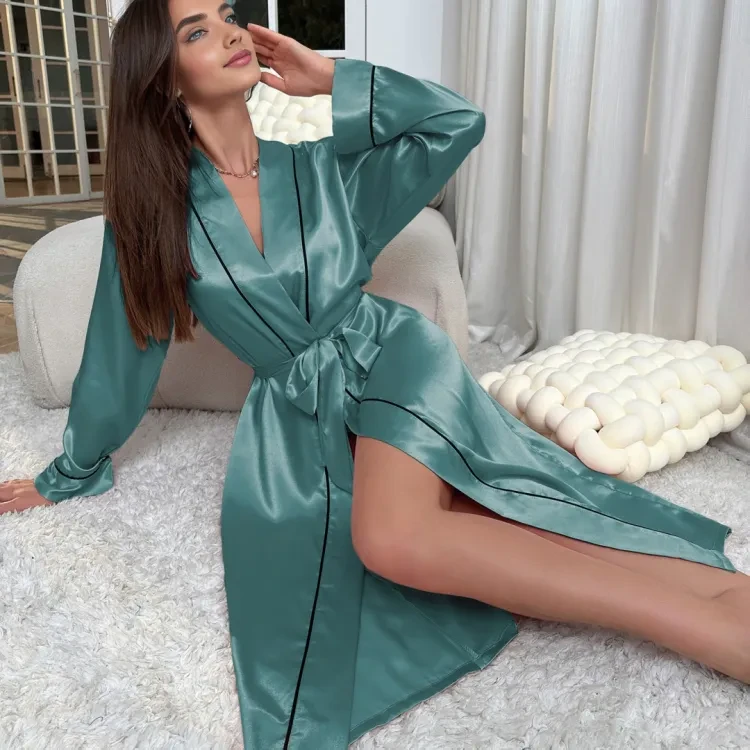 Indulge in luxurious comfort with this Women Lace Satin Gown Set Robe Dress. Crafted from high-quality satin silk fabrics, this robe set is designed to provide ultimate comfort while exuding elegance and style. Whether you're lounging at home or preparing for a restful night's sleep, this robe dress is the perfect choice.