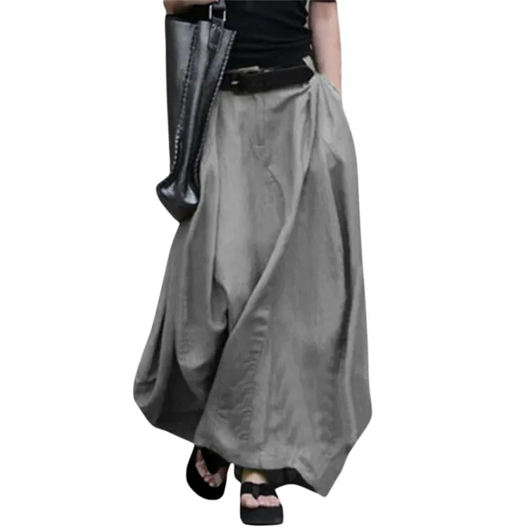 This A-line skirt is a versatile and stylish addition to any woman's wardrobe. Perfect for the spring and summer seasons, it features a solid color design and a high waist, offering a flattering silhouette. With pockets for added convenience, this streetwear skirt combines fashion and functionality seamlessly.