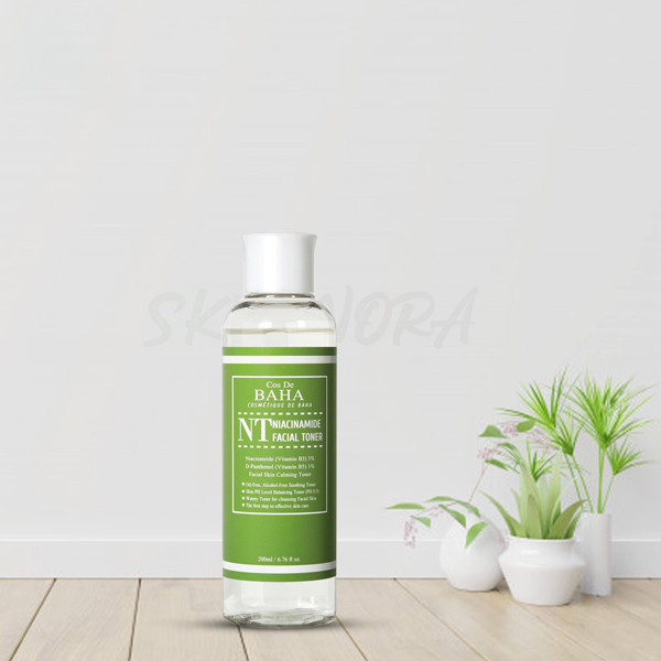 Cos De BAHA Niacinamide Facial Toner synergizes Hyaluronic Acid with Hamamelis Virginiana (Witch Hazel) and Licorice Root Extract to gently tone and soothe the skin, revealing a revitalized, brightened, and softened complexion. This alcohol- and oil-free formula brightens and moisturizes the skin, purifying it and priming it to efficiently absorb serums and moisturizers.